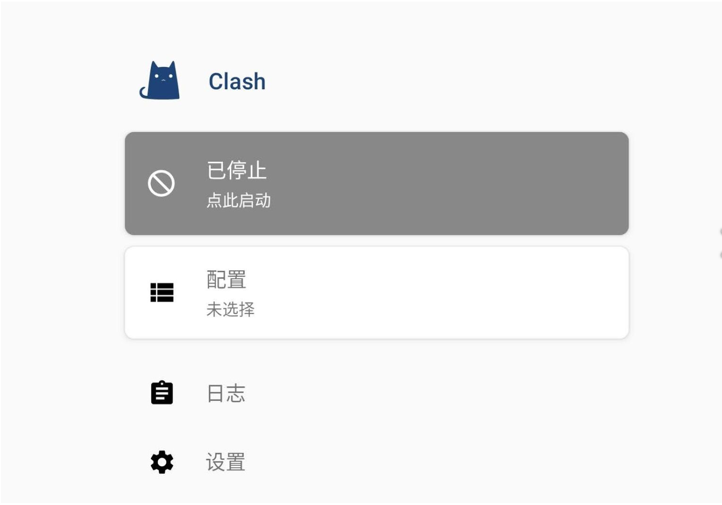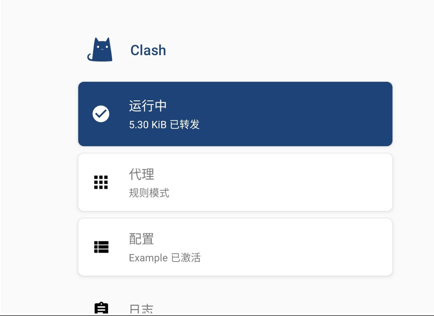 1、返回 Clash 首页,点击 已停止 按钮,将状态切换至运行中,Clash 便开始接管系统流量